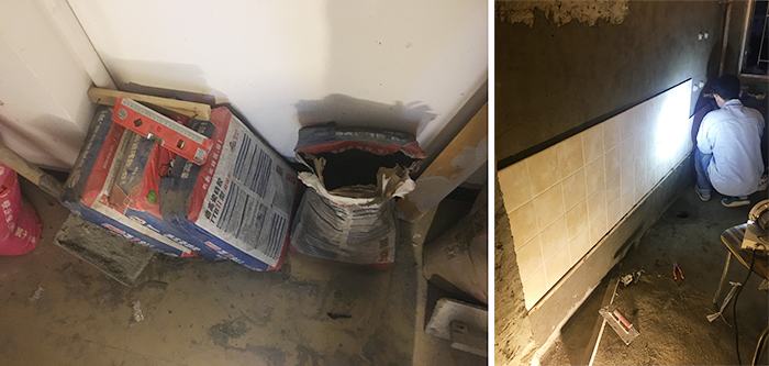 裝修時正好碰上回南天,師傅說地面有水,不能做防水,于是他就先把墻面的防水做了。