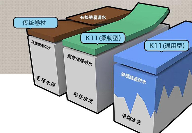 通用型具有滲透結晶功能,能滲入水泥基面,阻隔水分入侵(后期貼磚建議使用德高瓷磚膠等專業貼磚材料,盡量不用水泥砂漿)。