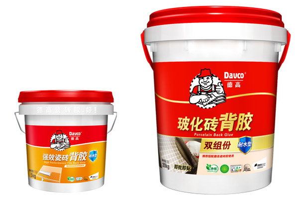 1、德高目前有兩款單組份純乳液的背膠產品,一款是以紅藍包裝桶設計的德高超強瓷磚背膠耐水型,是專賣店專屬產品。另外一款是以紅橙包裝桶設計的德高強效瓷磚背膠耐水型,是普通零售渠道產品。