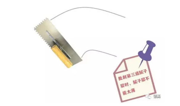 批刮第3道膩子時,膩子層施工不能太薄,避免水分流失過快。