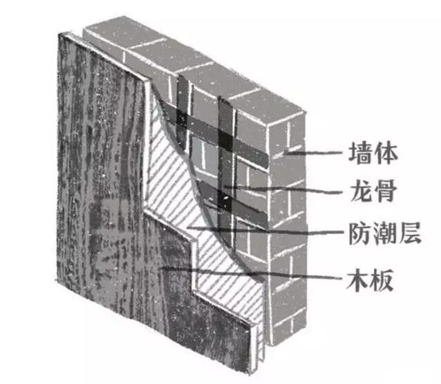 實木板材、復合板材乃至廢舊的木板都可以用作墻面裝飾,且因木材特質,吸音效果佳,具有一定的隔音作用。木材受潮、過油煙后容易變形,因而盡量避免在衛生間及廚房等功能空間使用。