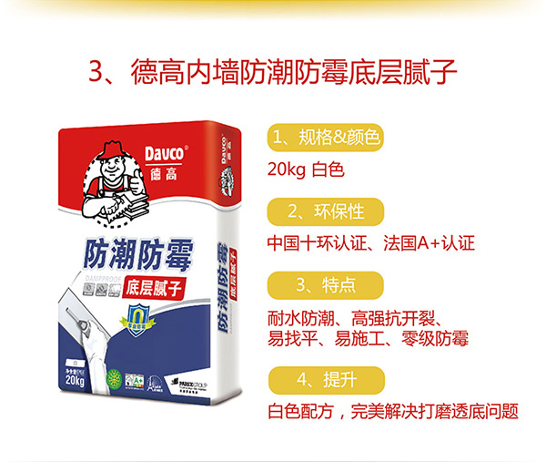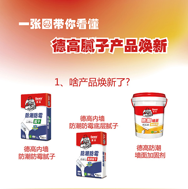 例如,德高的防潮防霉膩子系列。為了滿足大家不斷拔高的需求,德高防潮防霉膩子系列產品在近期全面煥新升級,亮點在哪里?一張圖帶你看懂!