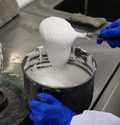 在實驗室中,德高工程師按照37%的濃度攪拌膩子粉,經過稱重、加水、手攪、機攪之后,共約4分鐘時間,膩子攪拌完畢。一般來說,質量優秀的膩子在3~5分鐘之間可以達到水粉完全交融的狀態,記者親測試手動攪拌過程,發現膩子加水攪成膩子膏,攪拌起來不費勁。