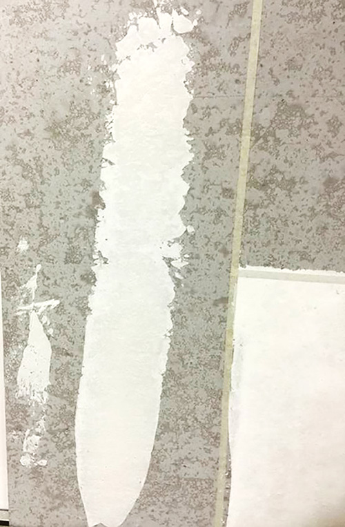 為了實際演示兼感受德高內墻防潮防霉膩子的操作性能,我們在一塊方形水泥板進行了現場批刮。