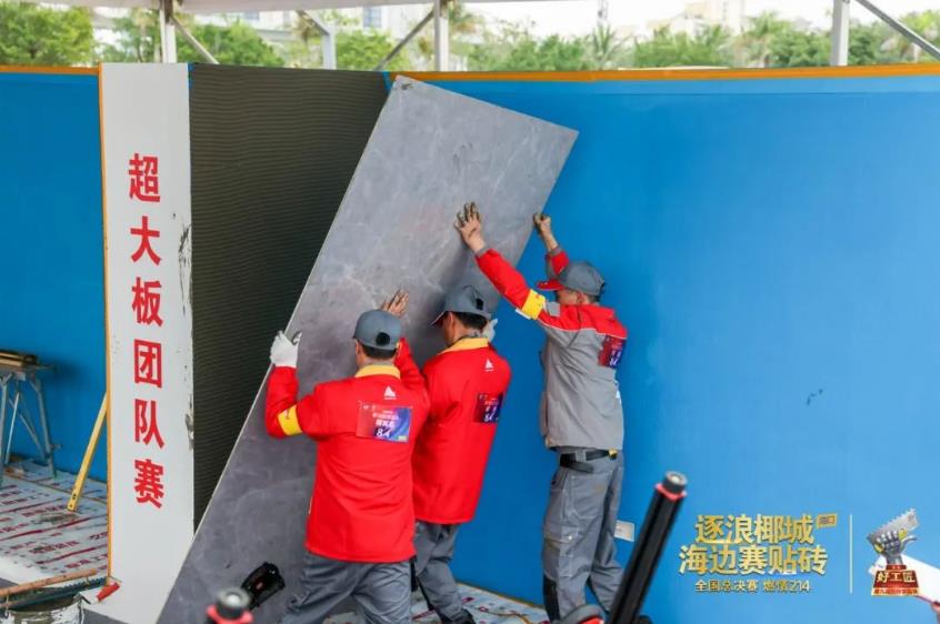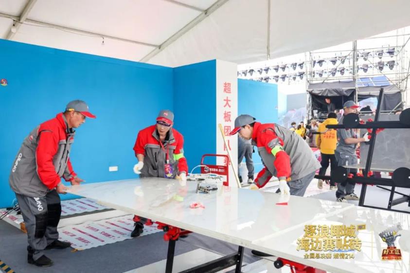 為支持巖板應用的持續健康發展,西卡德高也在第八屆、第九屆德高好工匠貼磚大賽里,引入“大板團隊賽制”,以賽代訓,引導工匠通過更專業的工具、更緊密的團隊配合及更高粘結力的瓷磚膠產品來提升巖板鋪貼的整體施工質量。