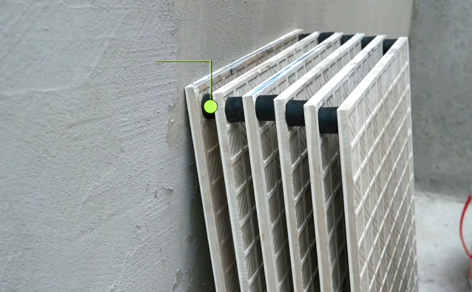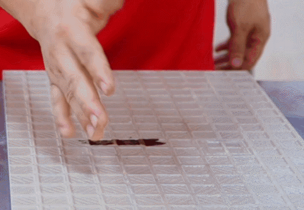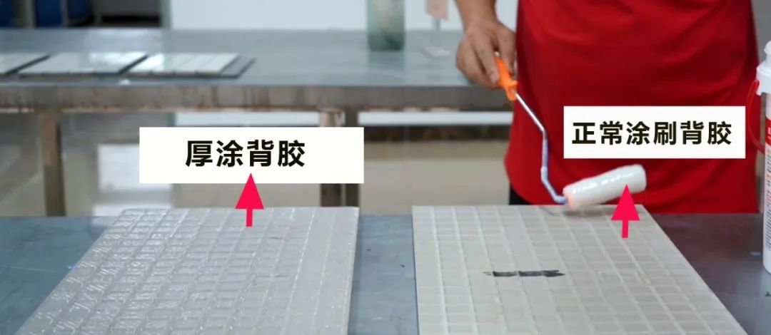 因此,建議涂刷后的背膠豎著放并使用巧匠背膠專用膠粒增大間隔。如條件允許,也可將每塊瓷磚敞開晾置,這樣有利于背膠水分揮發成膜。
